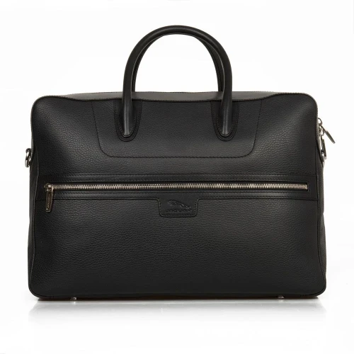 Black Brief Case made with a combination of smooth and grain leather. Features interior compartments and Jaguar branded zipper pulls and clasps.